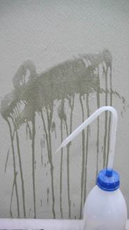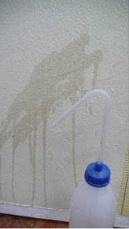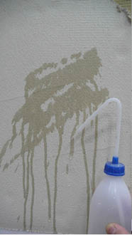 Наличие достаточного количества полимерных и гидрофобизирующих добавок придает армирующему слою хорошие водоотталкивающие свойства, как на поверхности, так и по всей толщине армирующего слоя. Поверхности StoLevell Uni (рис. 7) и StoLevell Duo Plus (рис. 8) практически не намокли. На образце (рис. 9) видно, что поверхность впитала большую часть влаги.