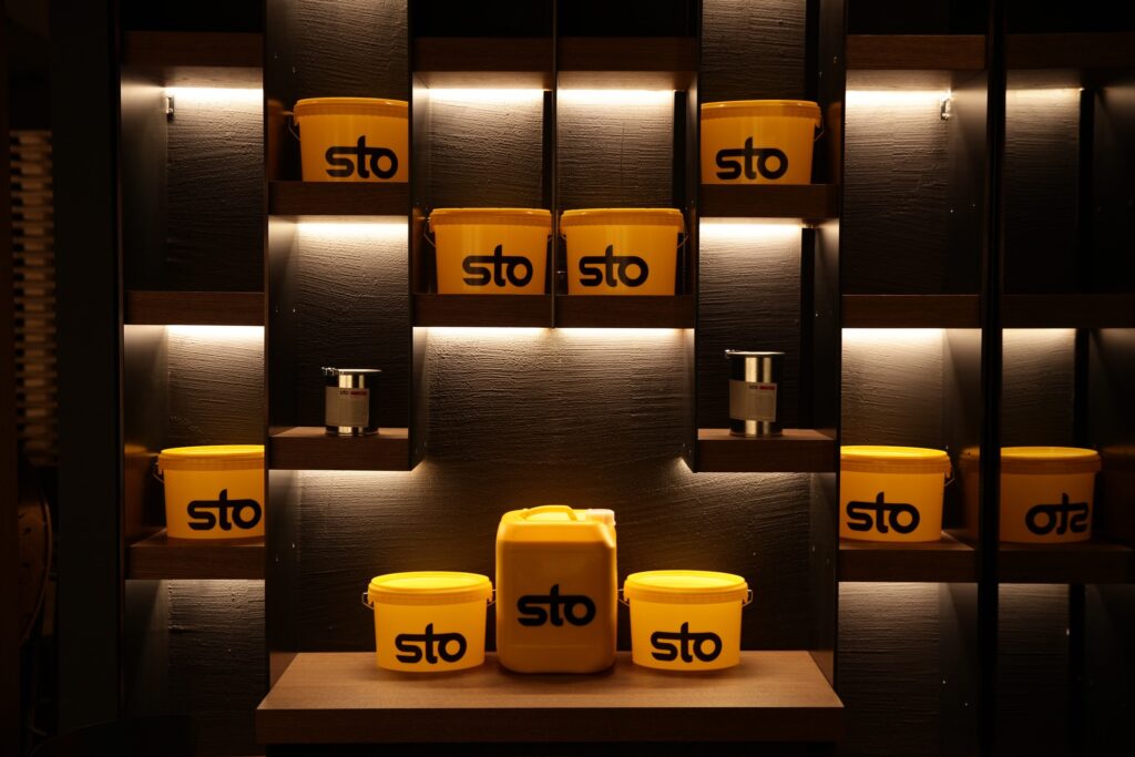 Наши материалы были выбраны дизайнерами студии ARCHFORM для декорирования интерьера, а Виктория Пеев использовала краски Sto, чтобы подчеркнуть и углубить текстуру декора.